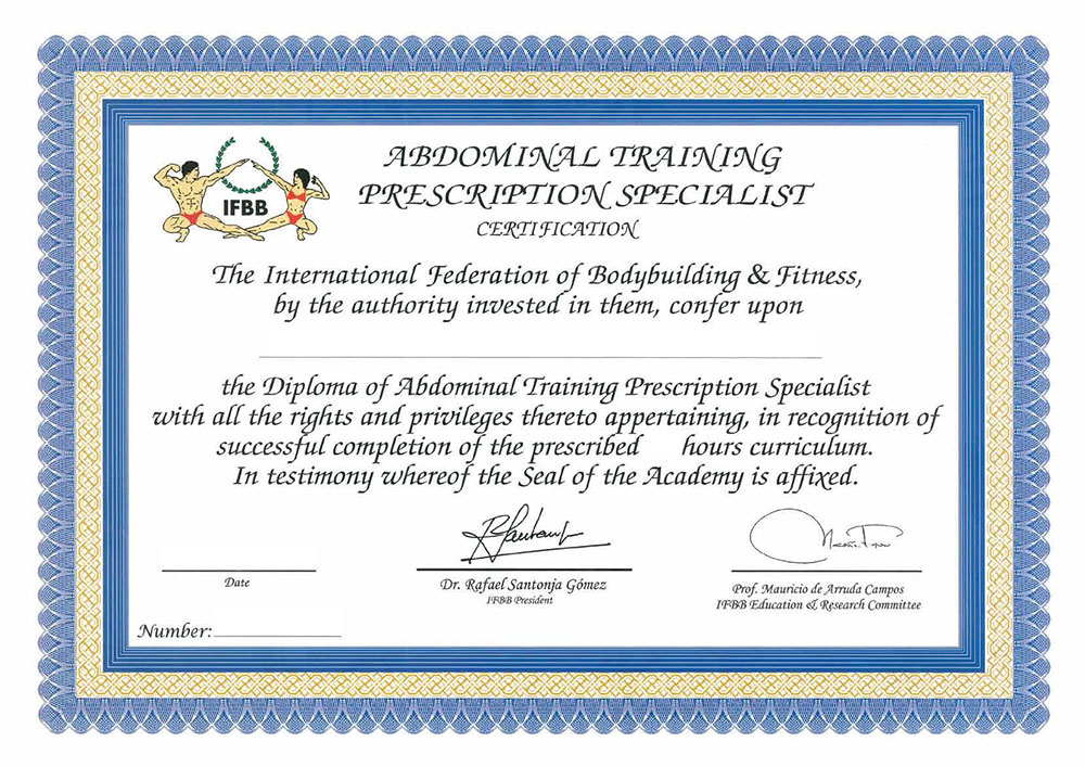 The abdominal training specialist course has been developed by Professor Mauricio de Arruda Campos, IFBB Director of Education. Author of several books on this subject, and after 2 years of extensive research through scientific publications and collaboration with various professionals around the world, the Professor developed and organized a course focused very efficiently and specifically on abdominal training. The aim was to create a course that provides the student with a consistent reference to the middle zone and the famous 6 packs. For this reason, the course includes all the necessary items for a complete and updated knowledge on the variables that influence the efficiency, safety and intensity of abdominal exercises.